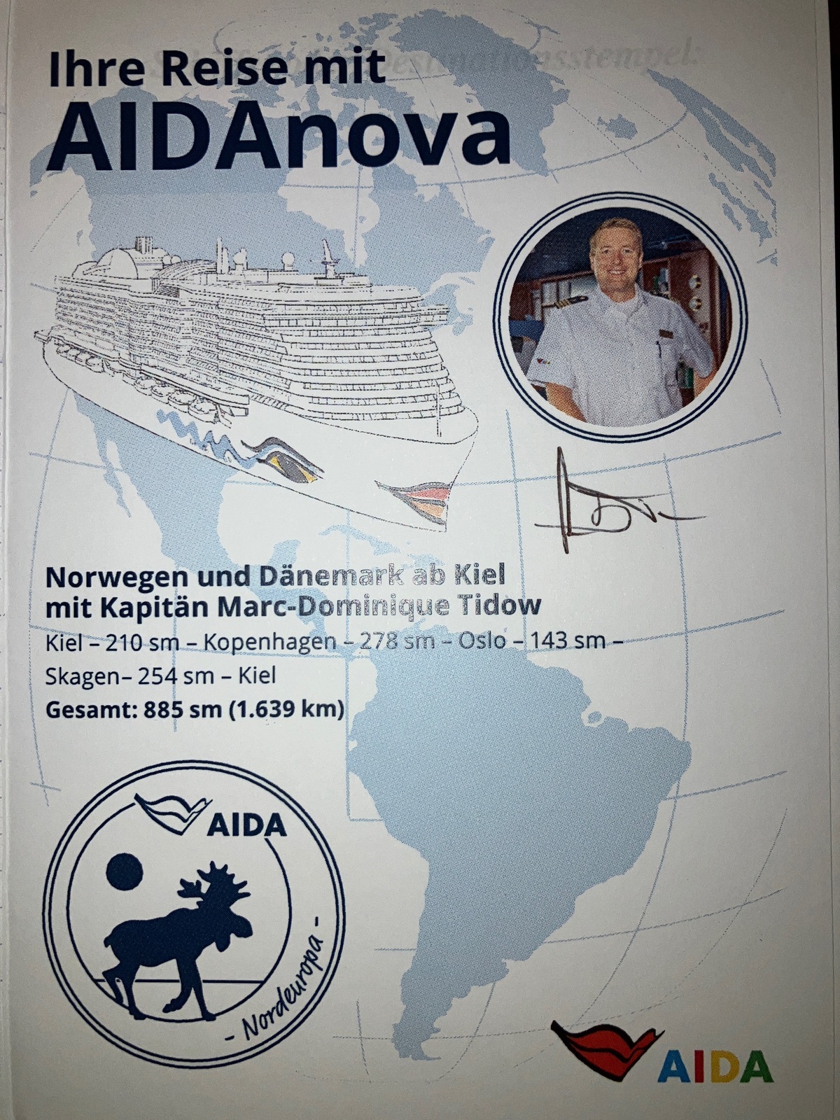 Ich bin gestern von der Metropolen-Route mit der AIDAprima zurückgekommen und hatte dabei das Logbuch erworben.