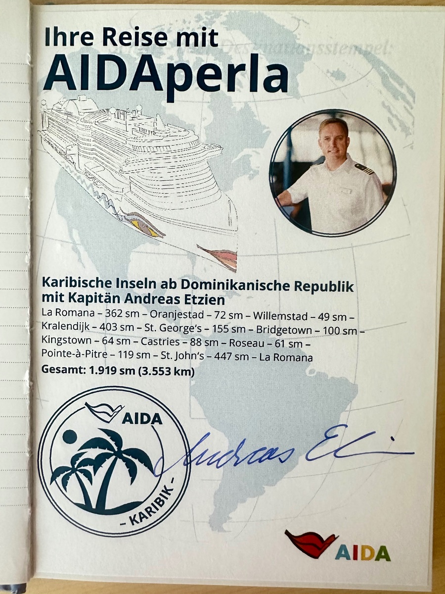 Den letzten „Hochglanzaufkleber“ (aber auch schon der neue Stil) gabs bei mir auf AIDAsol Kanaren 01/23.