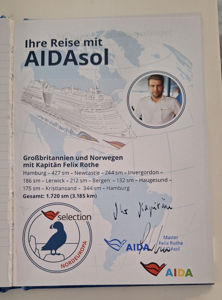 November auf der Prima konnte ich mein Logbuch abgeben, habe es mit Aufkleber mit Widmung, sieht auch aus wie handschriftlich und nicht wie kopiert, vom Kapitän und mehreren Stempeln wieder bekommen :thumbsup: