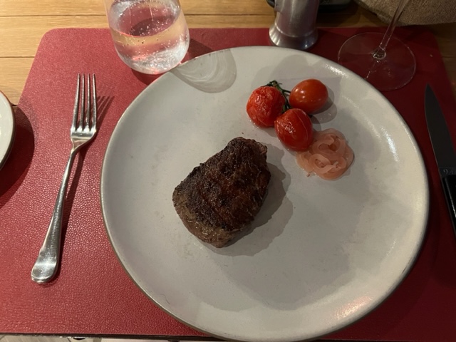 Das sollte Filetsteak sein - das ging gar nicht weil sehr viele Fettaugen. Schade.