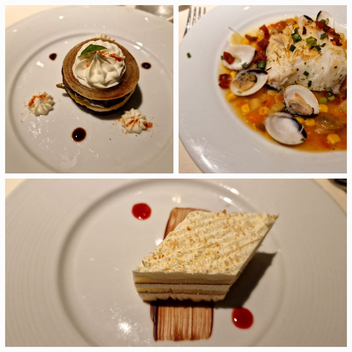 Da ich auf MSC Schiffen immer viele Essensfotos mache, hier ein Paar speziell für Alicia. Das sind Fotos aus den inkludiert Bedienrestaurants auf der MSC Grandiosa und MSC World Europa, jeweils Abendessen. Manchmal seht ihr mehr als 3 Gänge, weil ich mich nicht entscheiden konnte