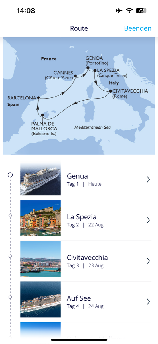 Ja wir auch. Und unbedingt ab Genua.
