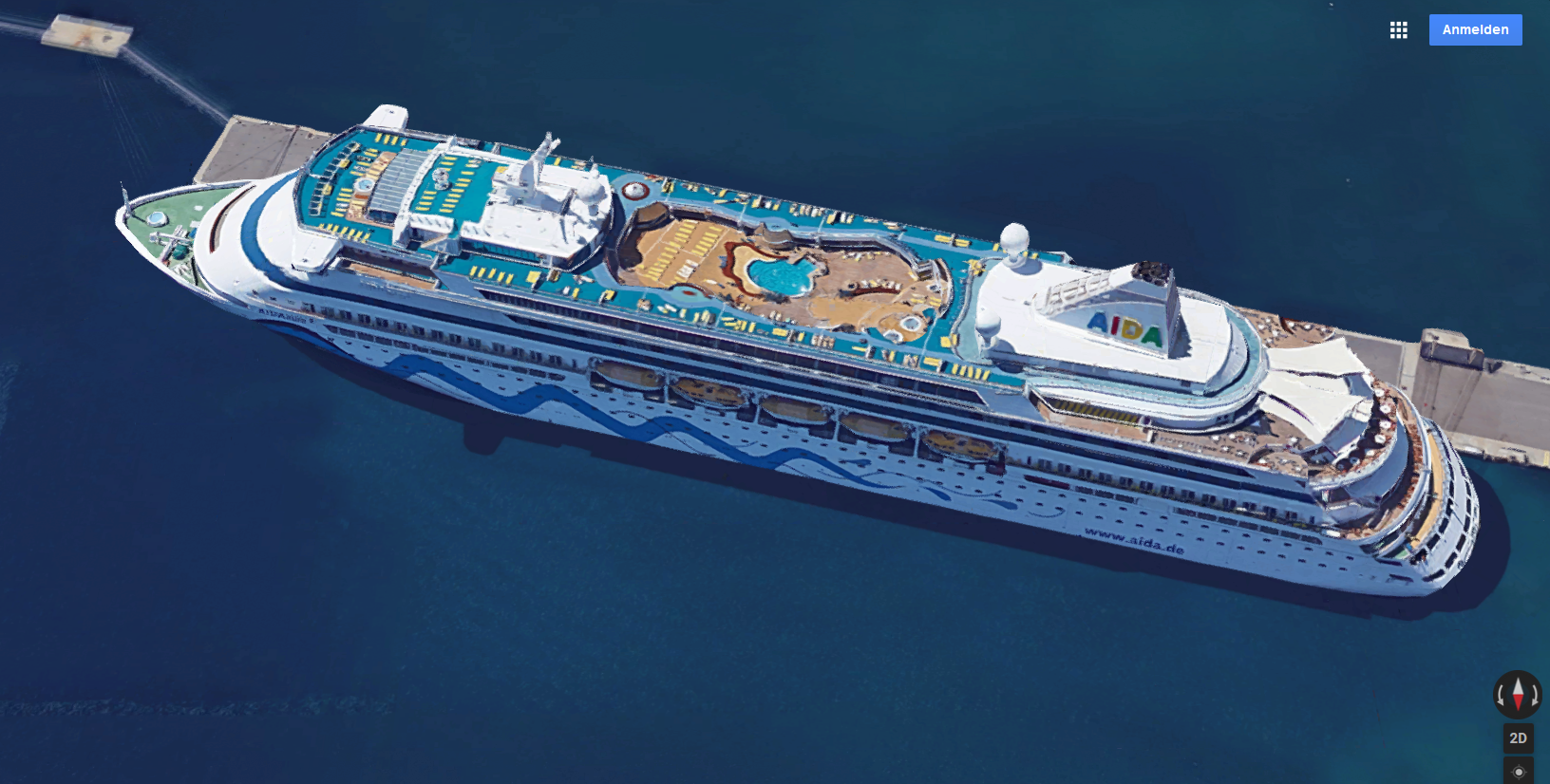 In Ajaccio sieht man aktuell bei Google Maps die AIDA Aura