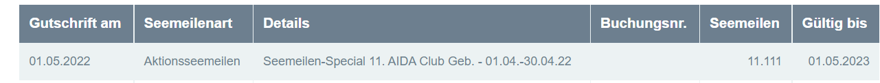 Vor einer halben Stunde im Club gewesen, noch keine Geburtstagsseemeilen gutgeschrieben, gerade eben noch einmal reingeschaut (war eigentlich nur versehentlich noch eingeloggt, wollte mich ausloggen) und siehe da: