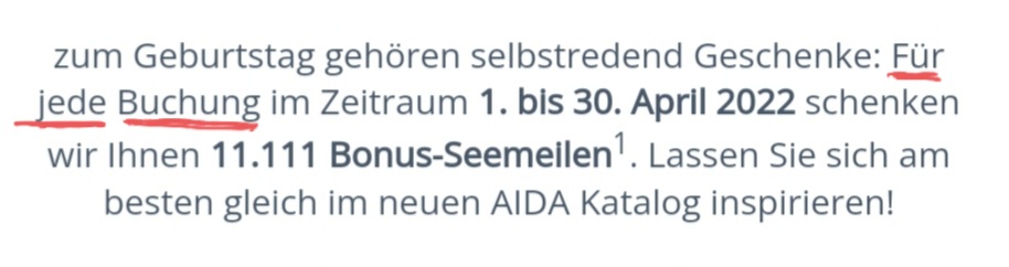 Das man die Seemeilen nur für eine Reise bekommt, stand aber nicht in der Ankündigung.
