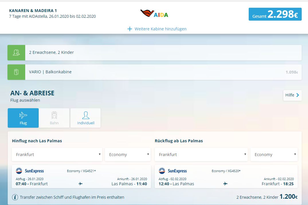 ich habe zwei Kabinen gebucht für 799€ Veranda Komfort Kanaren mit Flug im Januar. Leider nicht für mich selbst... Aber: Top Preis