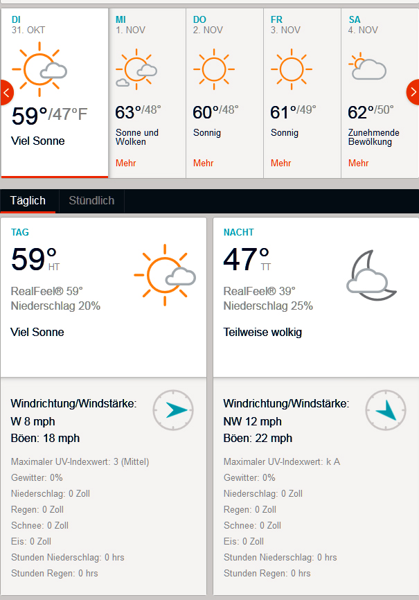 Hier das Wetter für NY am 1. und 2. November (wenn es dann so kommt)