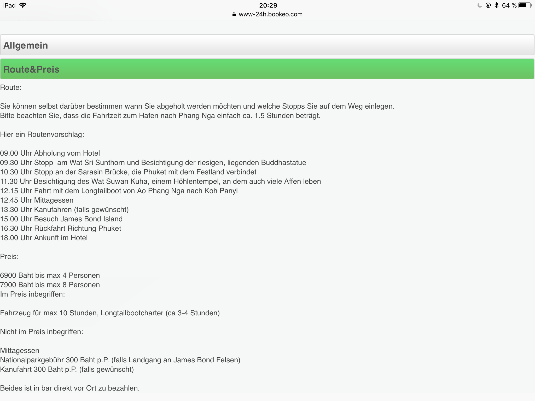 Ja Bezahlung bei Buchung. Gab es bei dem Angebot das du gesehen hast einen deutschen Tourguide? Bei Phuketastic jedenfalls nicht.