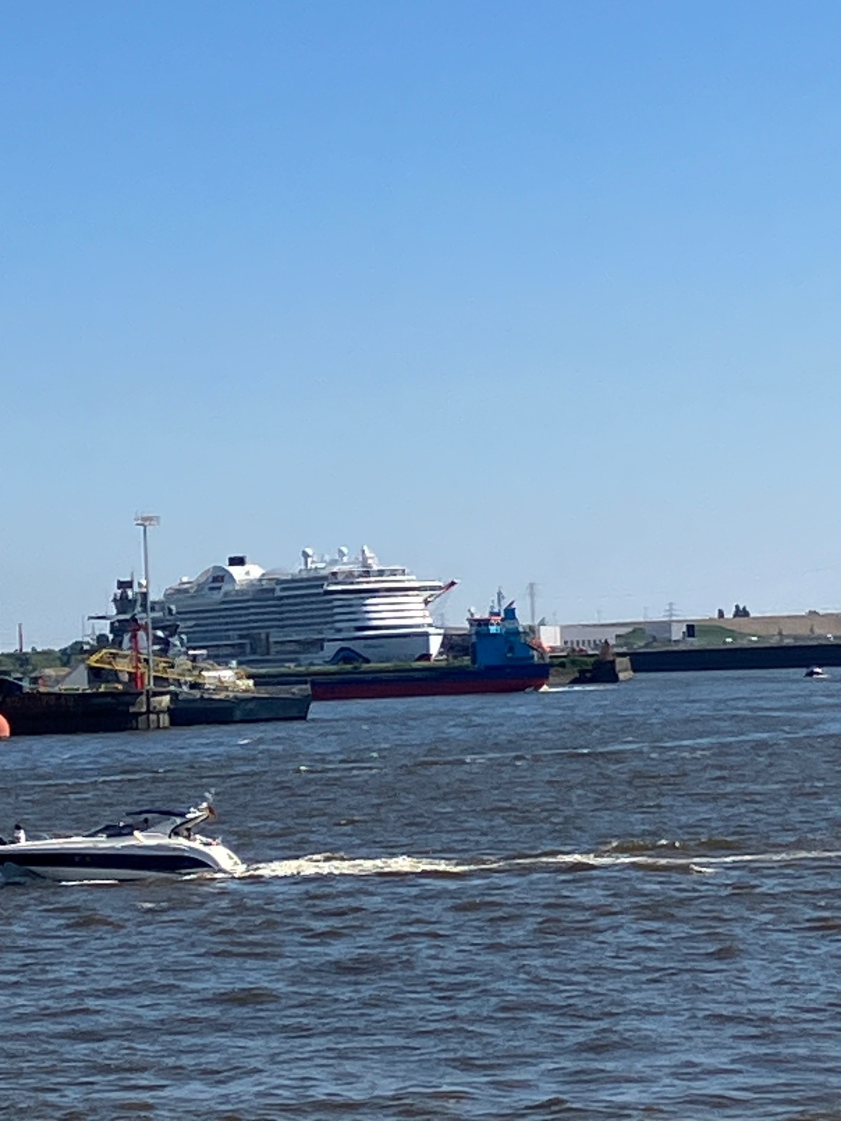 Auf einer Kreuzfahrt waren wir mal mit einem Kreuzfahrtschiff gegen 20:45 Uhr in Steinwerder los für