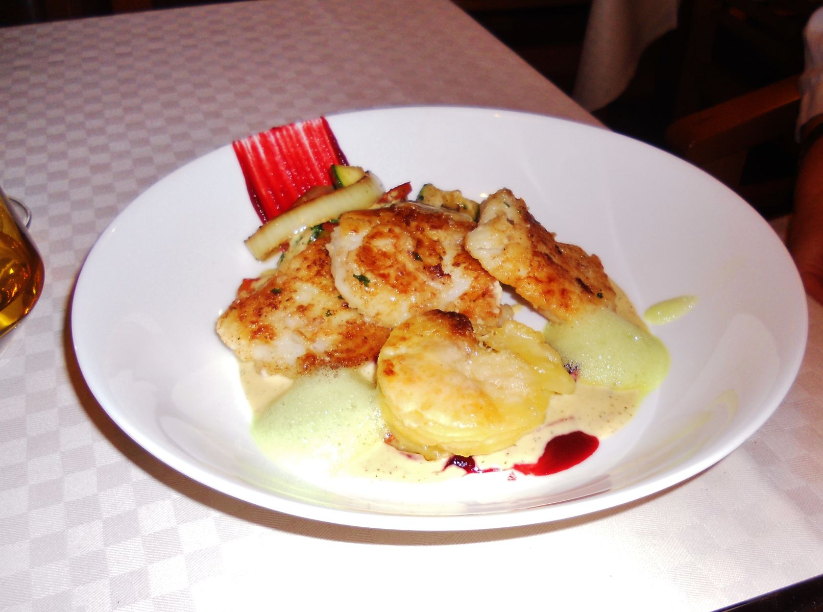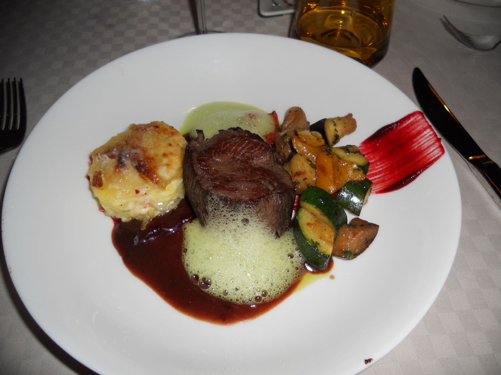 Der Nachteil bei der Speisenfolge ? Es zog sich über 2,5 h hin. Das ist eigentlich inakzeptabel. Der wirklich nette Restaurantleiter entschuldigte sich mehrmals, übernahm die bereits genossenen Getränke und bot uns weitere an, inkl. Espresso und Grappa. Somit war der Abend gerettet...
