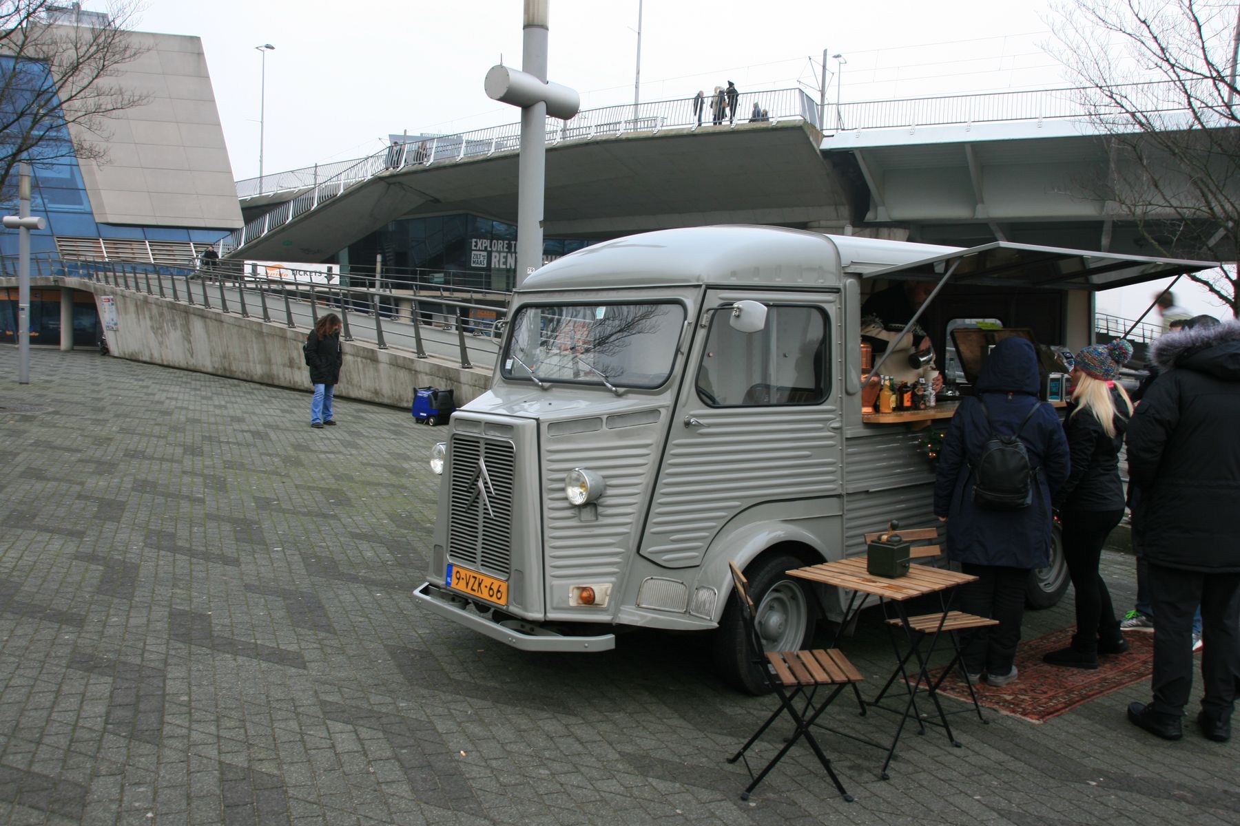 Der Espresso danach ? Na,ja. Ordentlichen Kaffee gab es am Ufer der Nieuwe Maas in einem umgebauten Citroentransporter. Bild später...