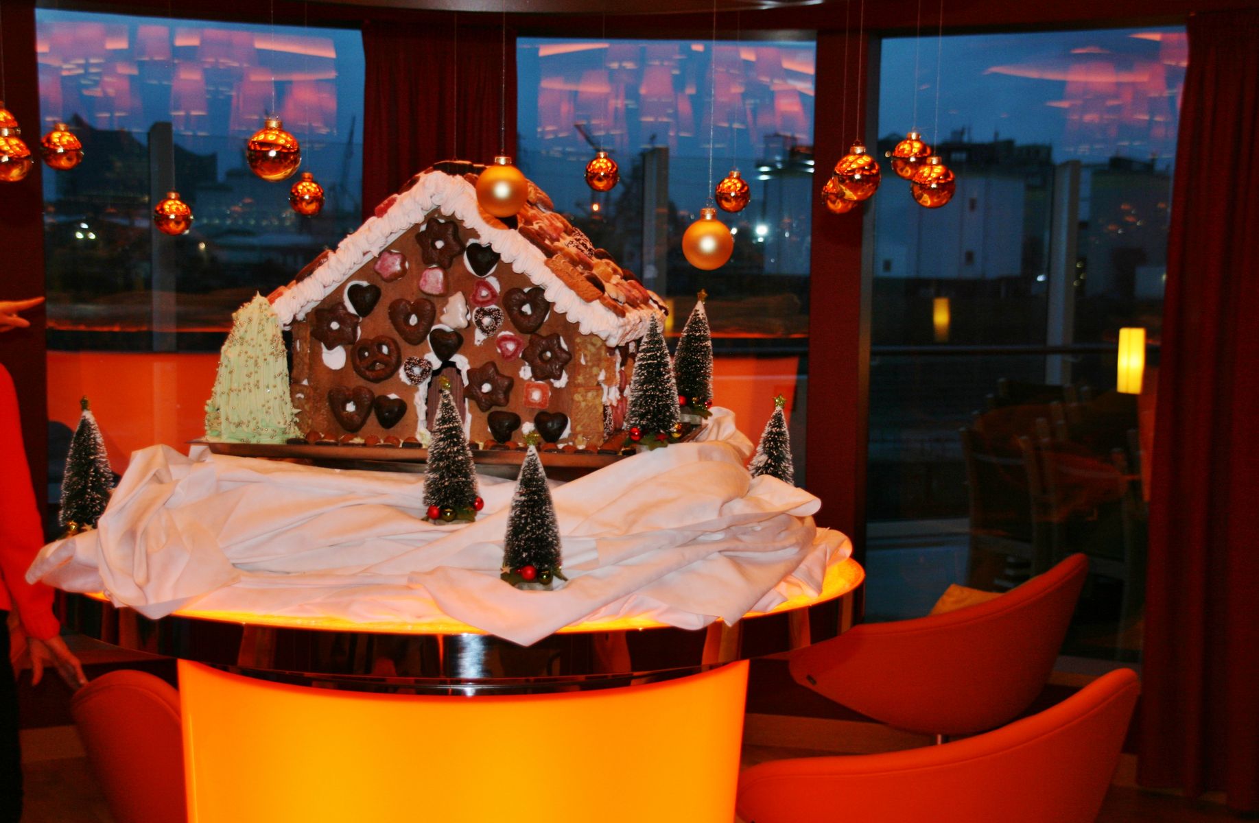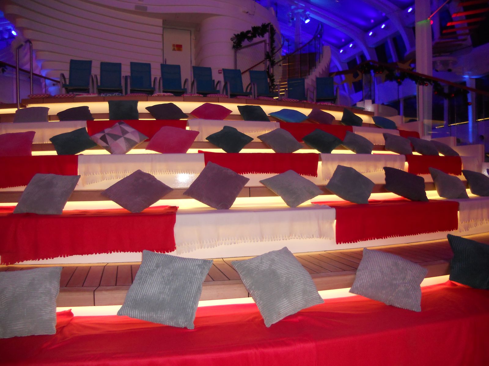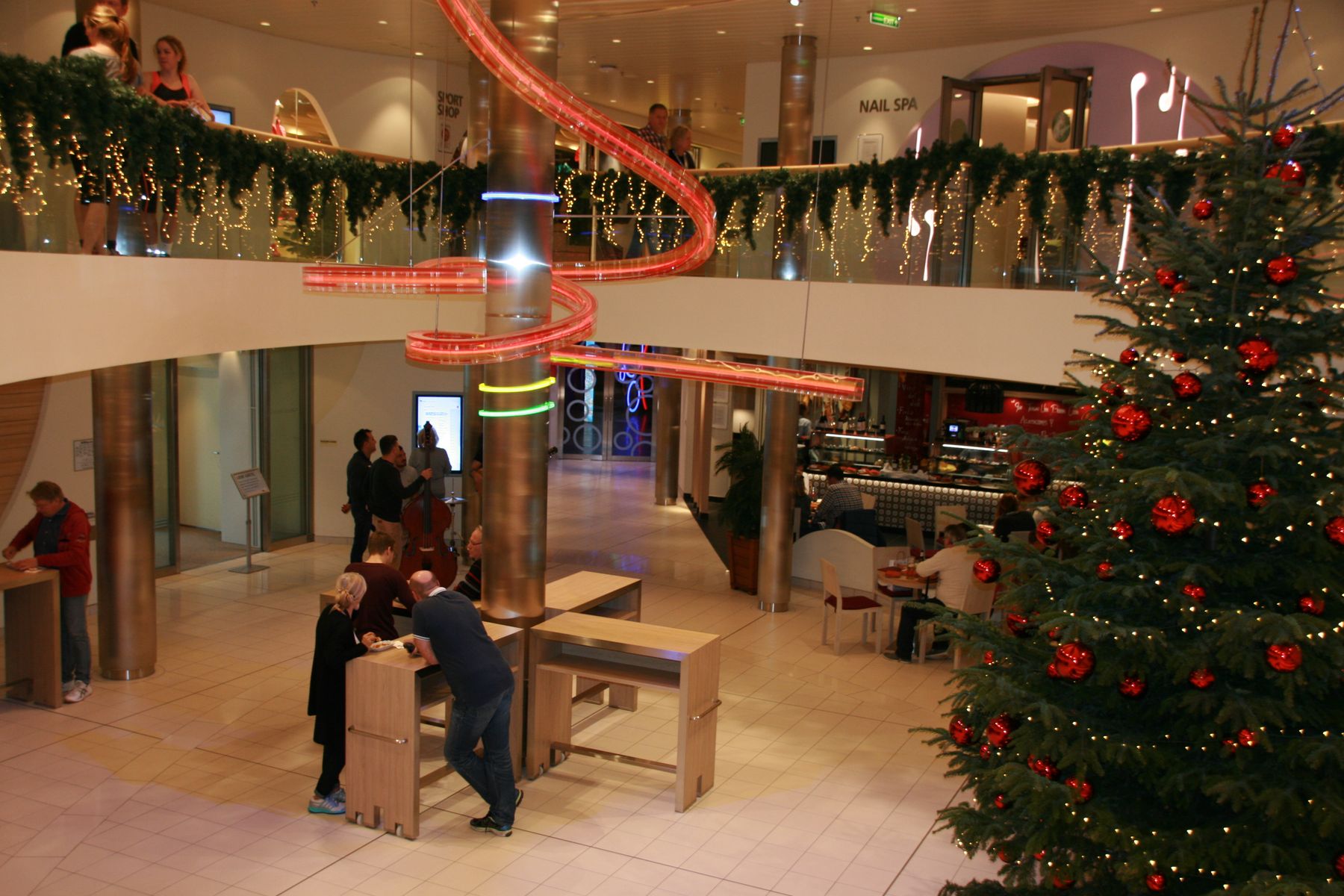 Da die Kabine noch nicht bereit war, machten wir einen ersten Rundgang. Überall weihnachtliche Deko, nicht zu viel, gerade richtig.
