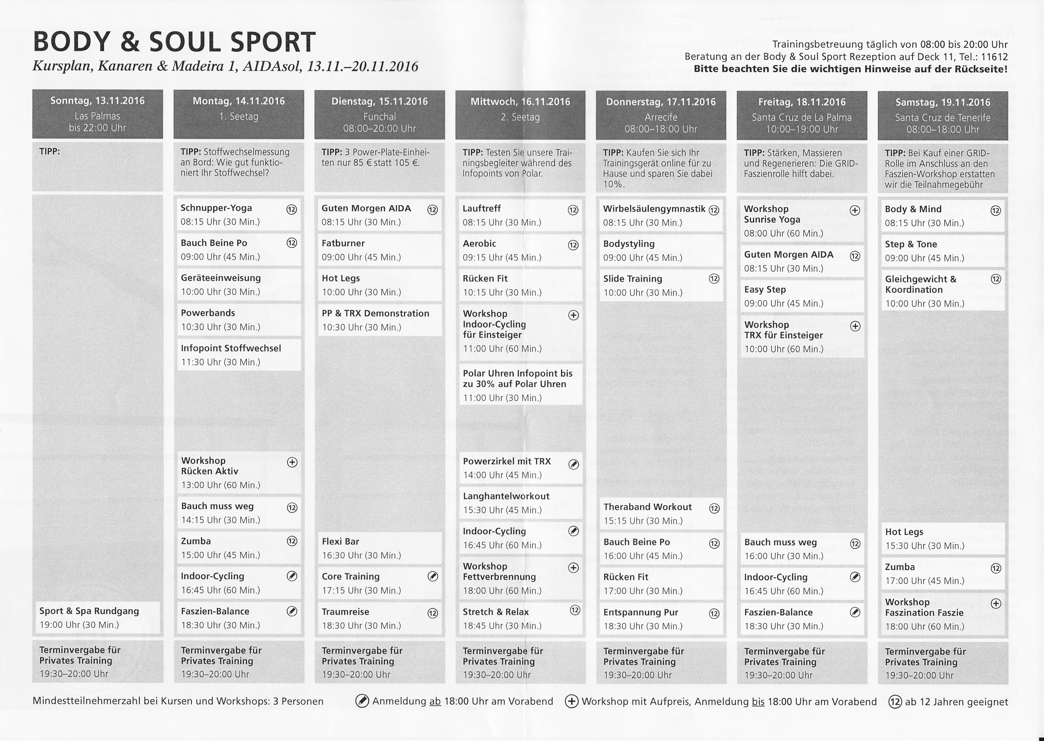kann jemand den aktuellen Fitnessplan der Aidasol (Kanaren-Tour) zur Verfügung stellen?