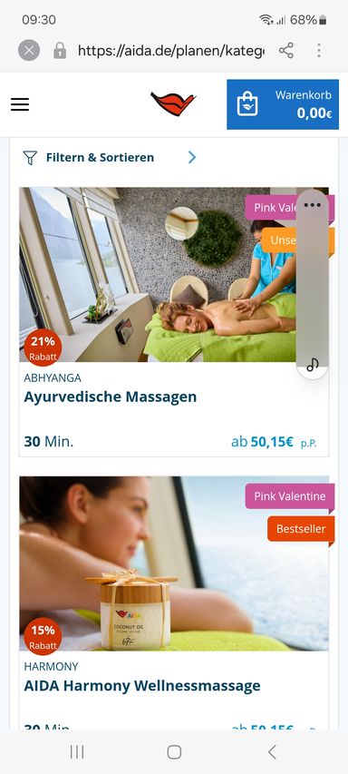 Super, nach nicht mal einer Woche sind zwar die meisten Massagen noch als "Pink Valentine" gekennzeichnet, aber der Rabatt ist weg...macht voll Sinn, wann ist noch mal Valentinstag??