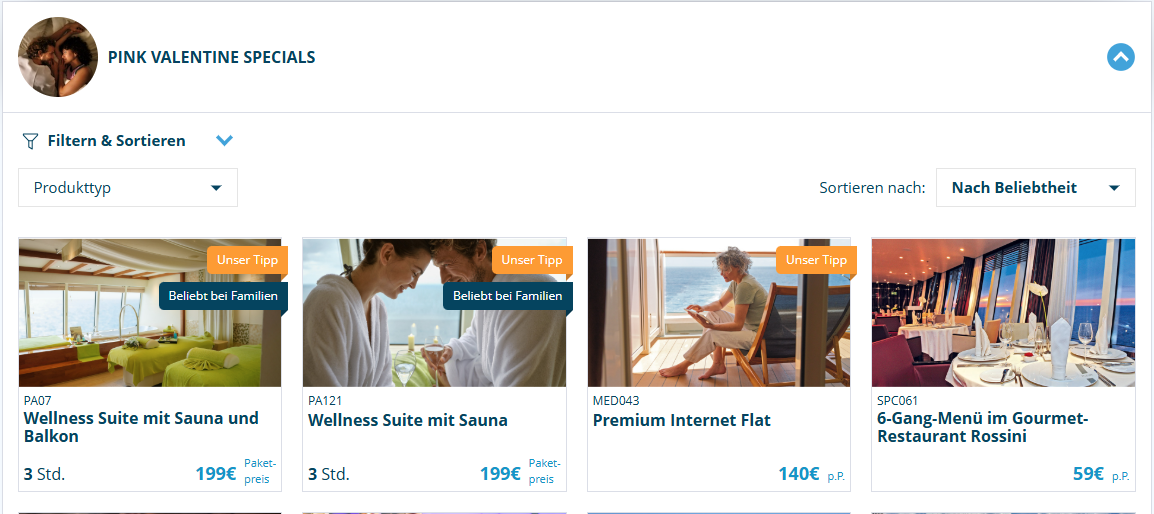 Sehr interessant, für meine Reise mit der Bella im März waren bei den Massagen Pink Valentine Angebote vorhanden, als ich eine auswählen wollte - war alles weg...