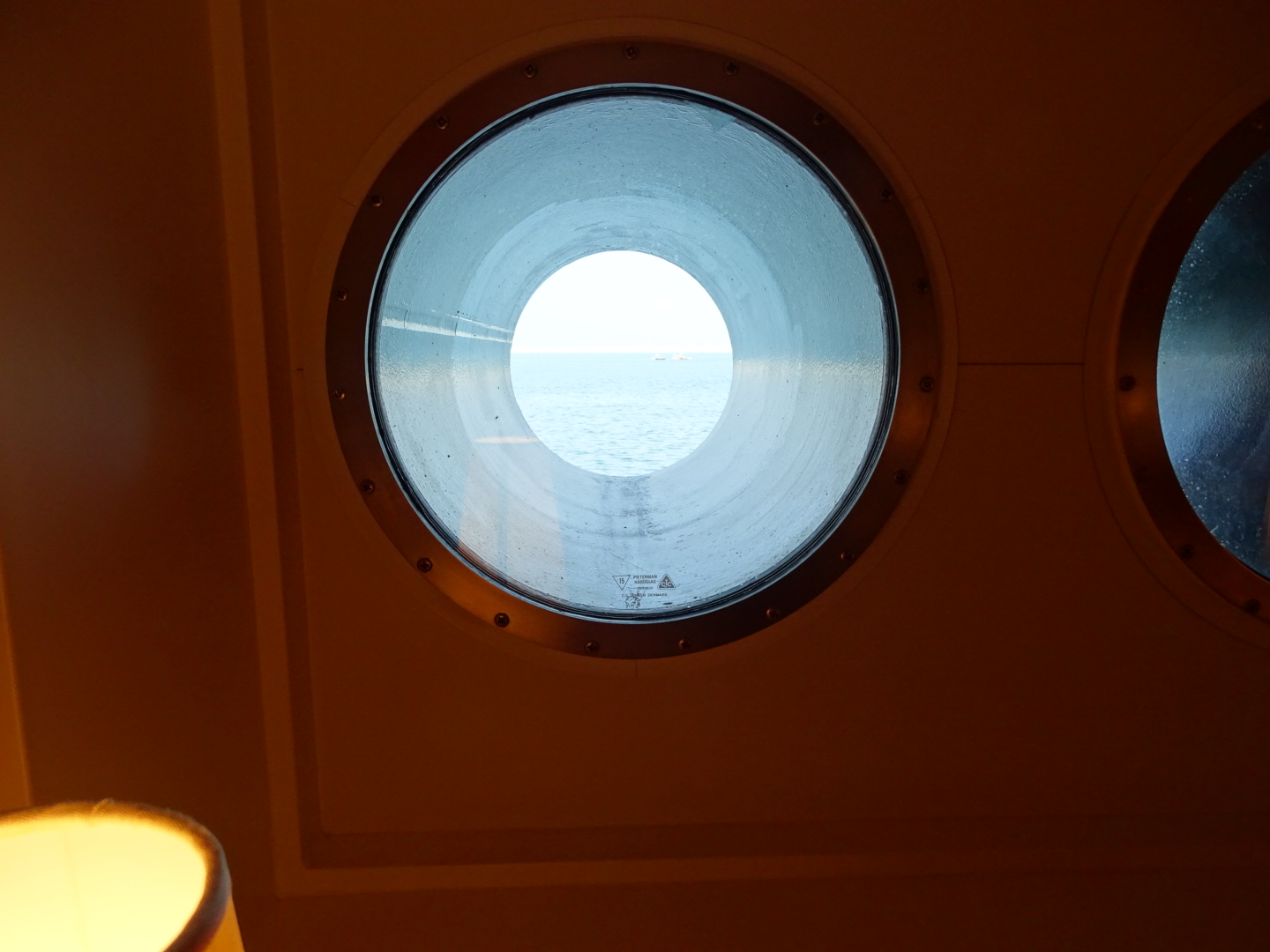 Was mich ehrlich gesagt etwas ärgert: die Kabine wird als Meerblickkabine verkauft, ist aber meiner Meinung nach eher eine Kabine mit eingeschränkter Sicht wegen der tiefliegenden Bullaugen. Vielleicht ist sie dadurch auch etwas dunkler, als "normale" Meerblickkabinen, das hat mich aber weniger gestört.