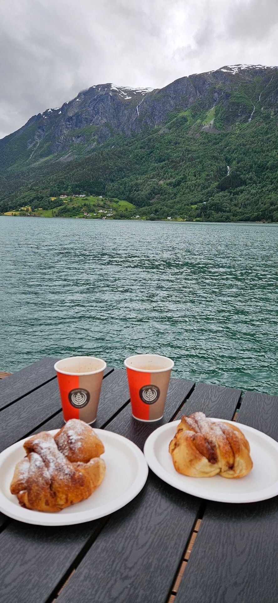 Von der Skulptur aus kann man außerdem wunderschöne Fotos in den Fjord hinein machen, mit dem Schiff im Hintergrund.Für mich war der Tag in Skjolden der schönste Tag der Reise, da man wunderbar relaxen und die Natur genießen konnte.