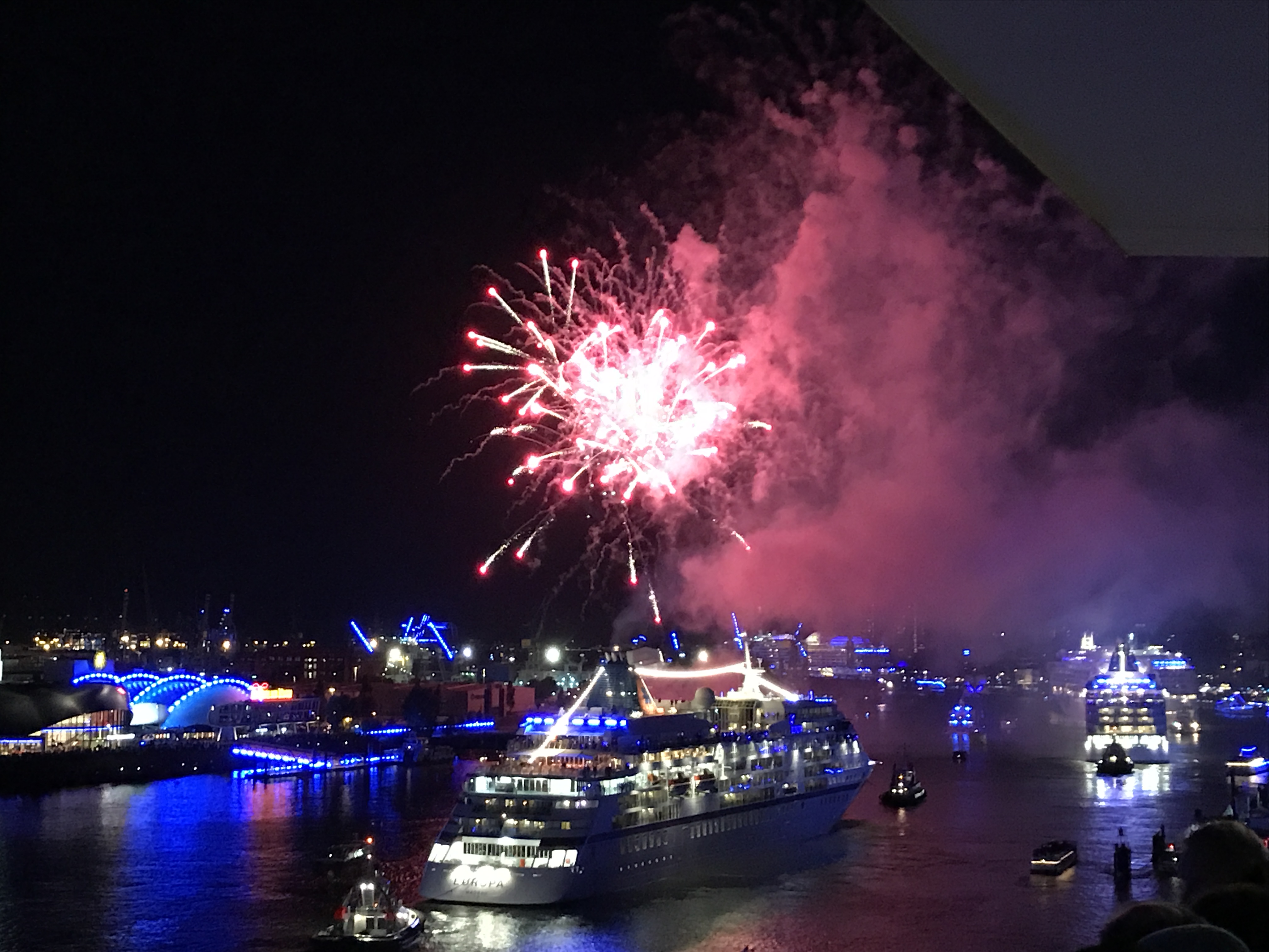 Waren gestern vor Ort. So ab 16:30 Uhr hörte der Regen auf und der Himmel war nachher mehr blau, als bewölkt. Wir waren bei allen Cruise Days. Dieses mal war der Abstand zwischen den Schiffen größer. Dadurch waren die Feuerwerke immer vor dem entsprechenden Schiff! Es war eine tolle Veranstaltung. Alle Leute die um uns rumstanden, waren begeistert. Das waren alles keine Hamburger. Heute am Sonntag waren wir noch einmal bei den Cruise Days und schauten bei den Reedereien vorbei. wenn man auf gestern Nacht zu sprechen kam, man hörte nur Begeisterung. MSC hatte in Höhe Landungsbrücken mehrere Stände mit klasse Live Karibikmusik. Gefiel uns besser als AIDA. Ist irgendwie immer gleich. NCL und TUI waren auch stark belagert! Die Leute standen in langen Standen nach Taschen und Gas Luftballons in Schiffsform an!