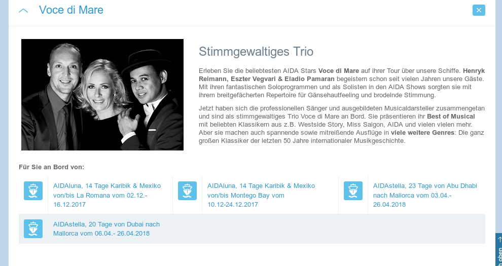 Gastkünstler sind i.d.R. bei Reisen ab fünf Seetagen an Bord.