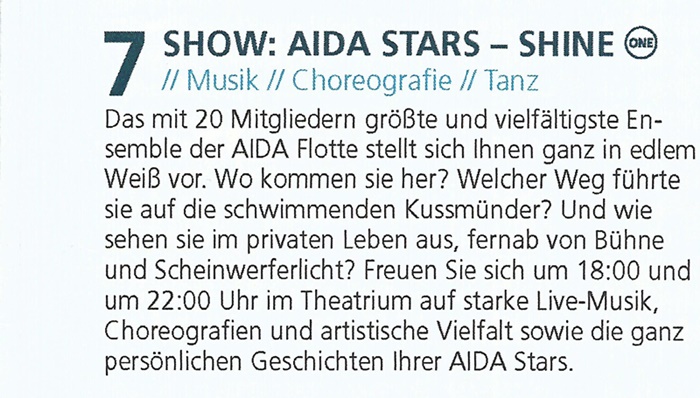 - RE: AIDA-Unterhaltungsprogramm/Shows