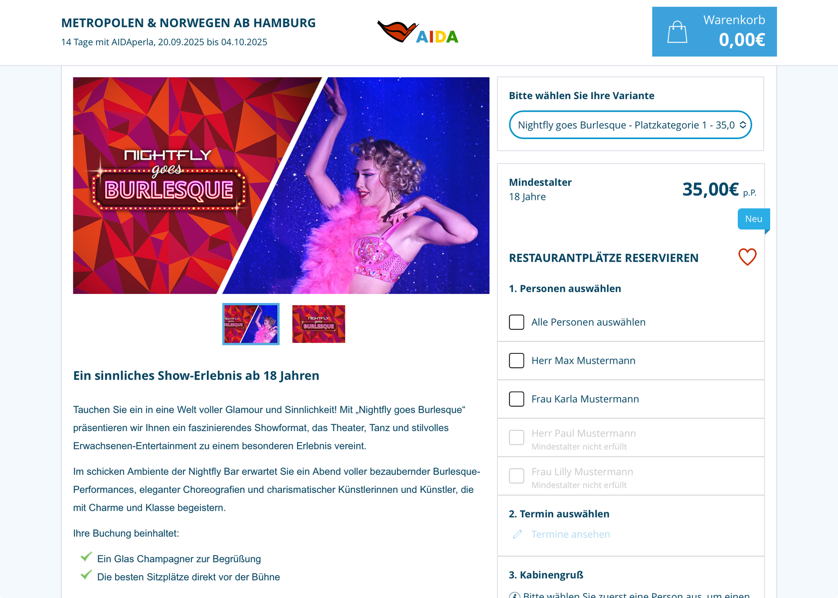 Kann man buchen unter Tischreservierungen, hab ich gerade gemacht für meine Metropolen-Tour ab dem 15.8.