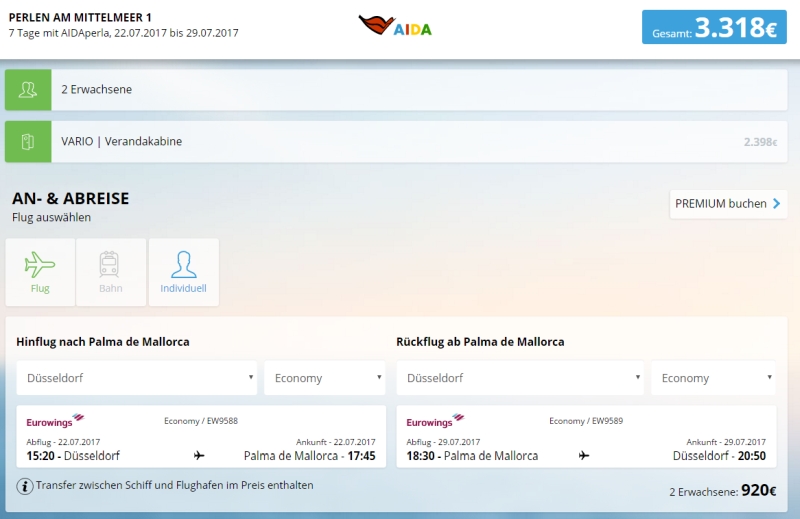 Beim Durchspielen der Buchung fiel mir sofort auf, dass nach der Wahl des Flughafens tatsächlich schon der Flug angezeigt wurde!