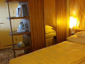 Eingerichtet ist sie wirklich sehr schön, für 2 Personen eine tolle Aufteilung. Man hat ein Fenster und kann auch direkt über den Rettungsbooten super durchschauen. Wenn man eh nur Innenkabine gebucht hat, ist das eine super Überraschung. 2 mal ist ein Mitarbeiter vorbei gelaufen, normale Passagiere kommen ja nicht dort hin. Zur besseren Vorstellung hänge ich noch ein paar Fotos an meinen Eintrag.