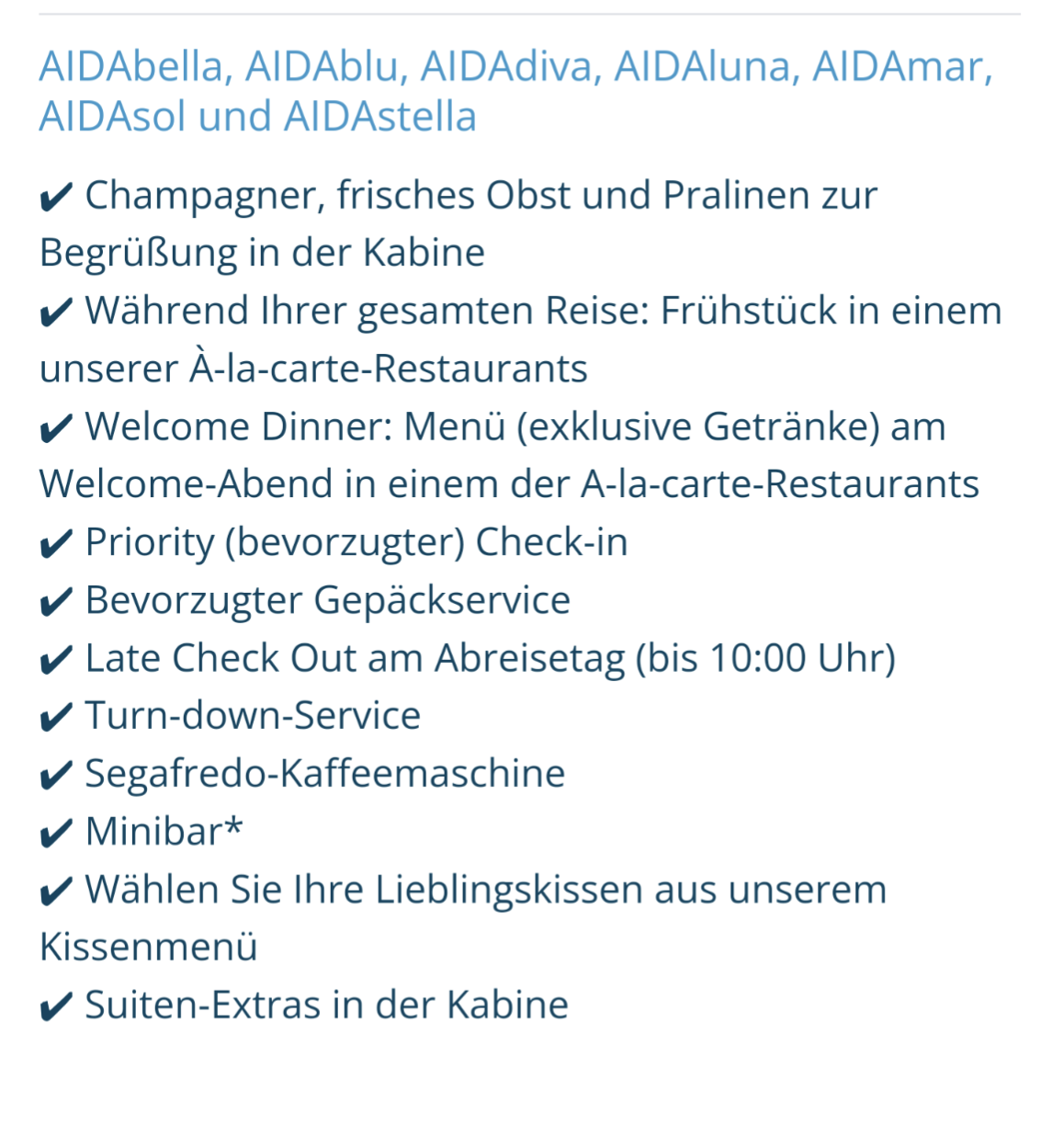 AIDA Suitenpaket - Unsere Suiten-Leistungen im Überblick