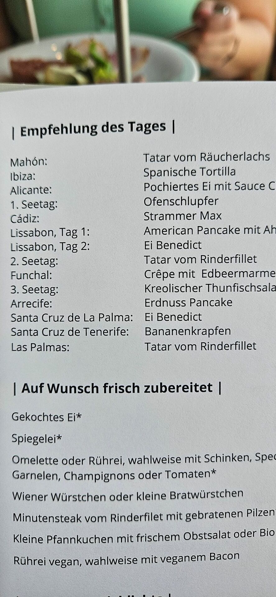 wo gibt es denn jetzt aktuell das Suiten Frühstück auf der Cosma?