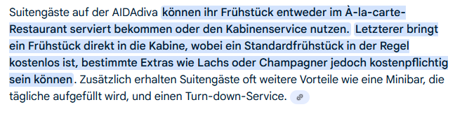 Auf der Homepage von AIda steht als Suitenservice nur das Frühstück im A-la-carte-Restaurant, aber bei Nova/cosma als Beispiel auch nur. Wo also findet man offiziell das mit dem Kabinenfrühstück? Das was eine Suchmaschine angibt, hat im Prinzip keine Relevanz.
