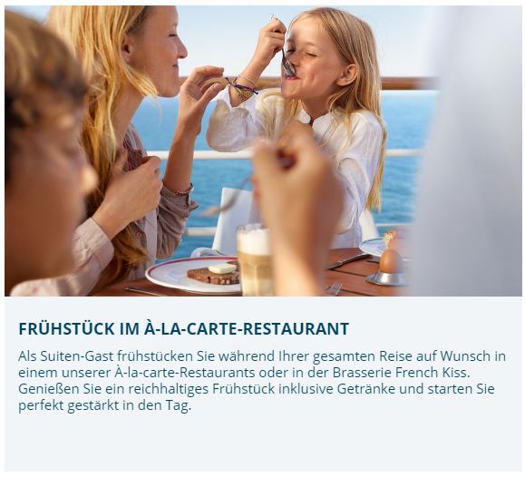 Hier der Link: aida.de/kreuzfahrt/reisen-mit-…rd/suitenpaket.40117.html (Hier findest Du auch alle Angaben, wer auf welcher Schiffsklasse wo frühstücken kann.)