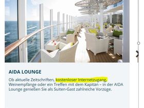 "Wir möchten unseren Gästen der Juniorsuiten aber bereits auch auf allen aktuellen Reisen die Möglichkeit geben, in den Genuss der mit dem Zugang zur AIDA Lounge verbundenen Extraleistungen zu kommen. Daher werden die Getränkepakete in der Übergangsphase ab sofort nicht mehr automatisch ausgehändigt, sondern der Gast wird durch uns schriftlich bis zum Katalogstart über die neuen Serviceleistungen informiert.