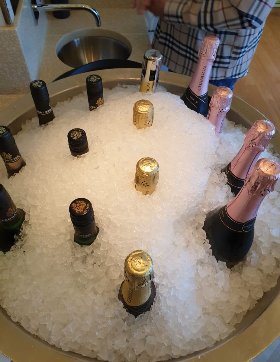 ) sowie die üblichen Thalgo-Prdukte waren schon auf der Kabine. Obstteller und Moet sowie die leckeren Pralinen kamen erst abends. Lag vermutlich daran, dass die guten Geister des Housekeepings erstmal alle Kabinen aufgrund der Kabinenquarantäne in Rekordzeit für die neuen Gäste herrichten mussten/müssen!