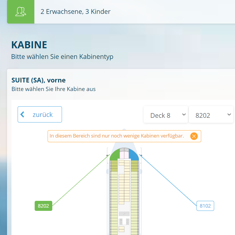 Schwippschwapp hat oben doch geschrieben, dass eine Suite Vario gebucht wurde. Also ist Aida die Personenanzahl doch bekannt. Sollte das nicht passen, hätte man doch nicht buchen können. Verstehe daher deine Kommentare nicht.