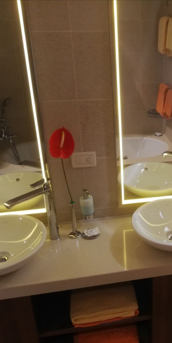 Sind gerade auf der Stella. Wellness Oase ist dabei. Obstteller, Champagner ist auch da.