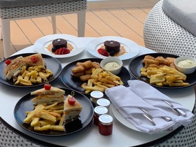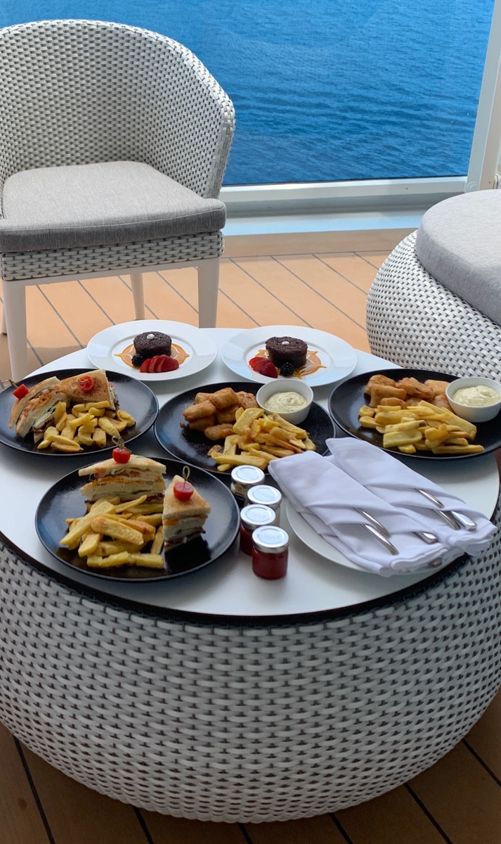 Der Kabinenservice für die Suiten ist wirklich klasse. Nicht nur Frühstück, ab 12:00 Uhr kann man auch eine kleine Auswahl an Speisen kostenfrei auf die Kabine bestellen.