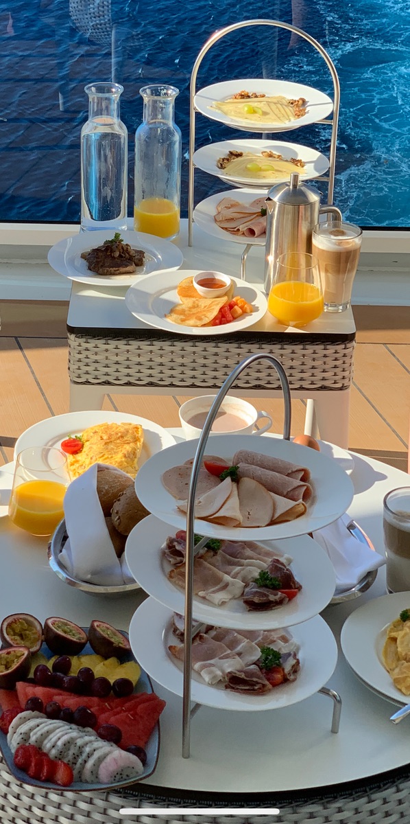 Der Kabinenservice für die Suiten ist wirklich klasse. Nicht nur Frühstück, ab 12:00 Uhr kann man auch eine kleine Auswahl an Speisen kostenfrei auf die Kabine bestellen.