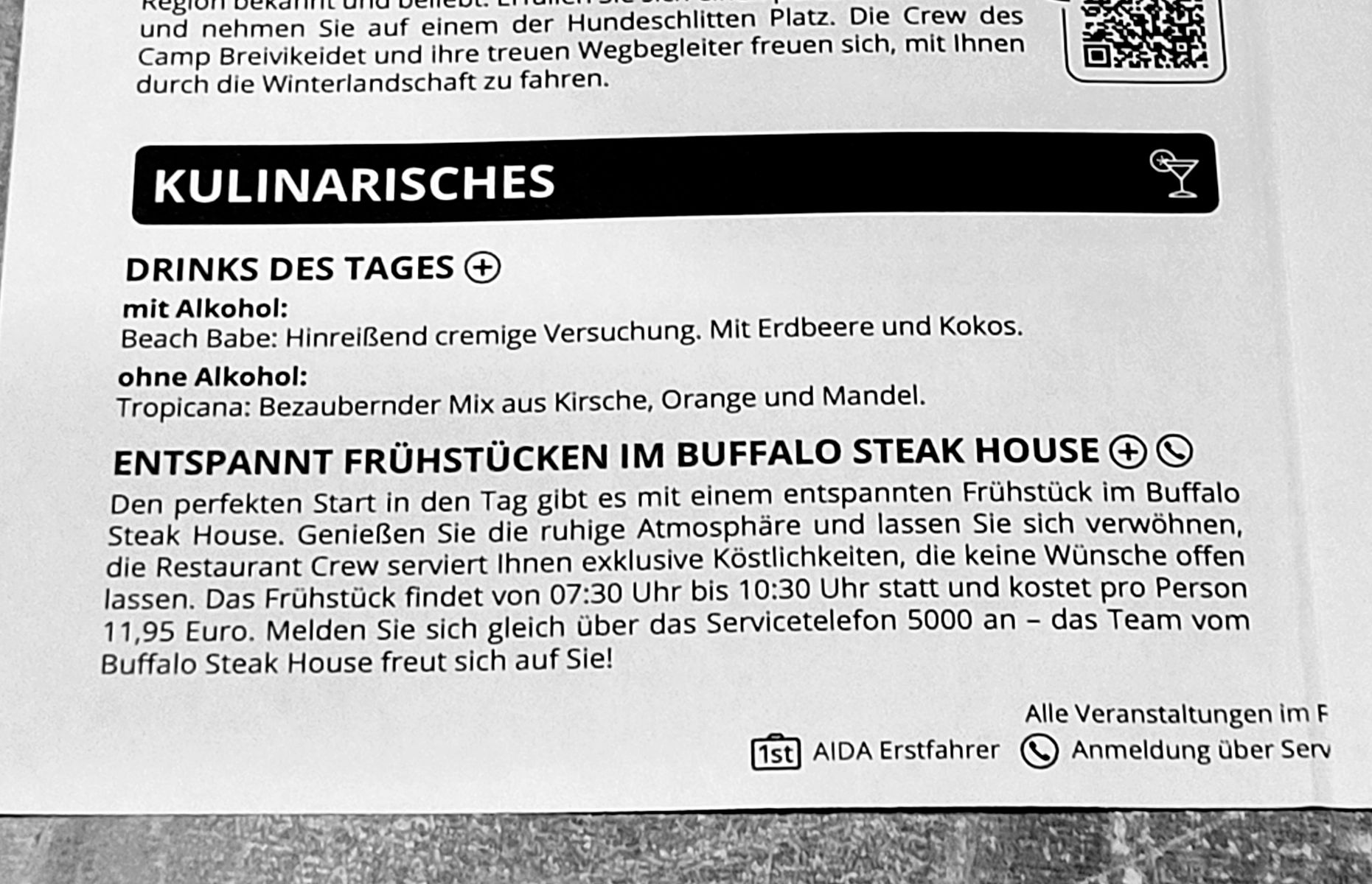 OT: kann man in den suiten / junior suiten kostenfrei auf der kabine frühstücken?