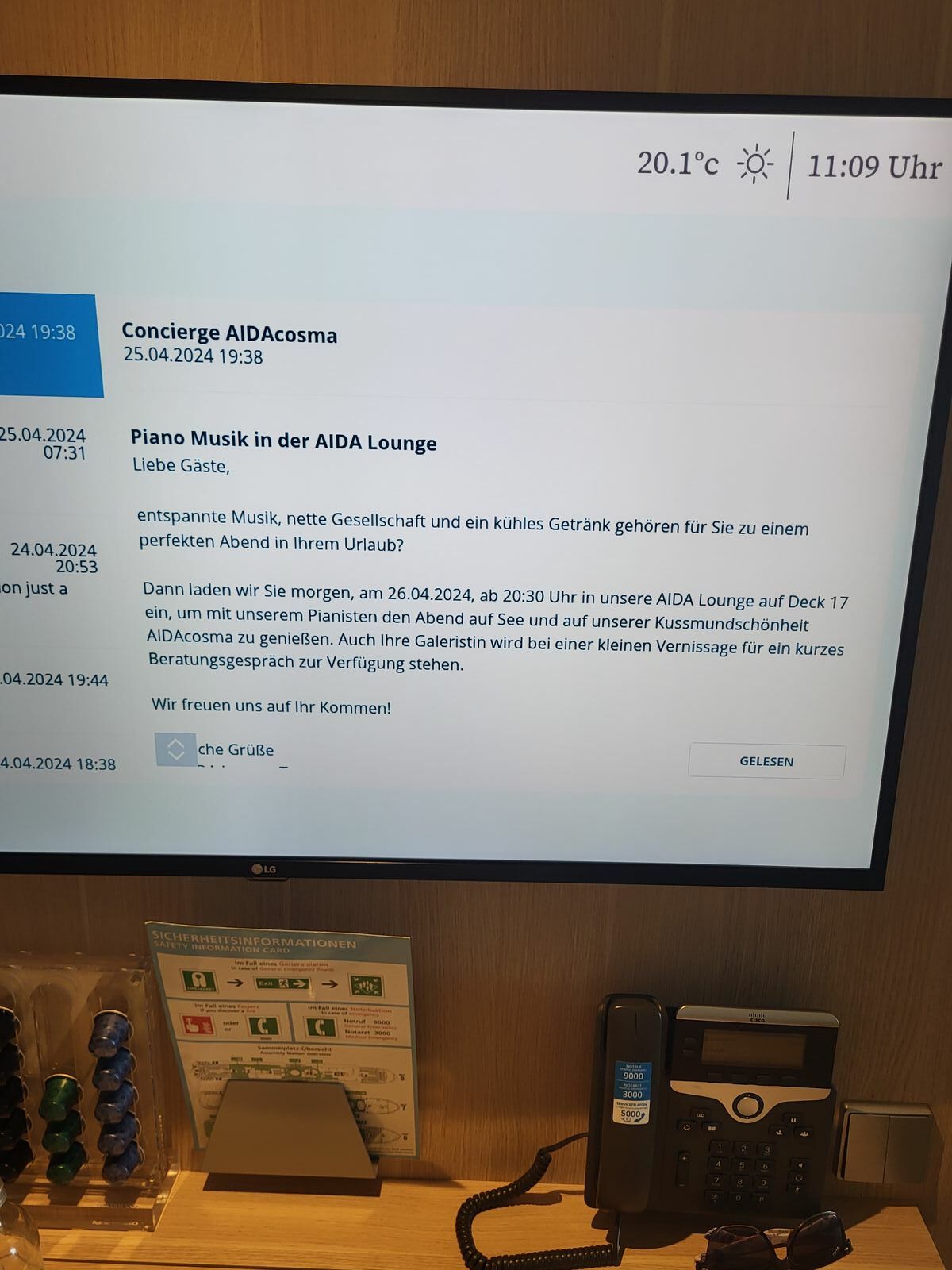 Hab ein paar Fragen. Ich würde gerne an Bord ein paar Restaurants buchen. Das geht ja über den Concierge Service. Hab ich in der Kabine eine Tel.Nr. oder wie geht das?