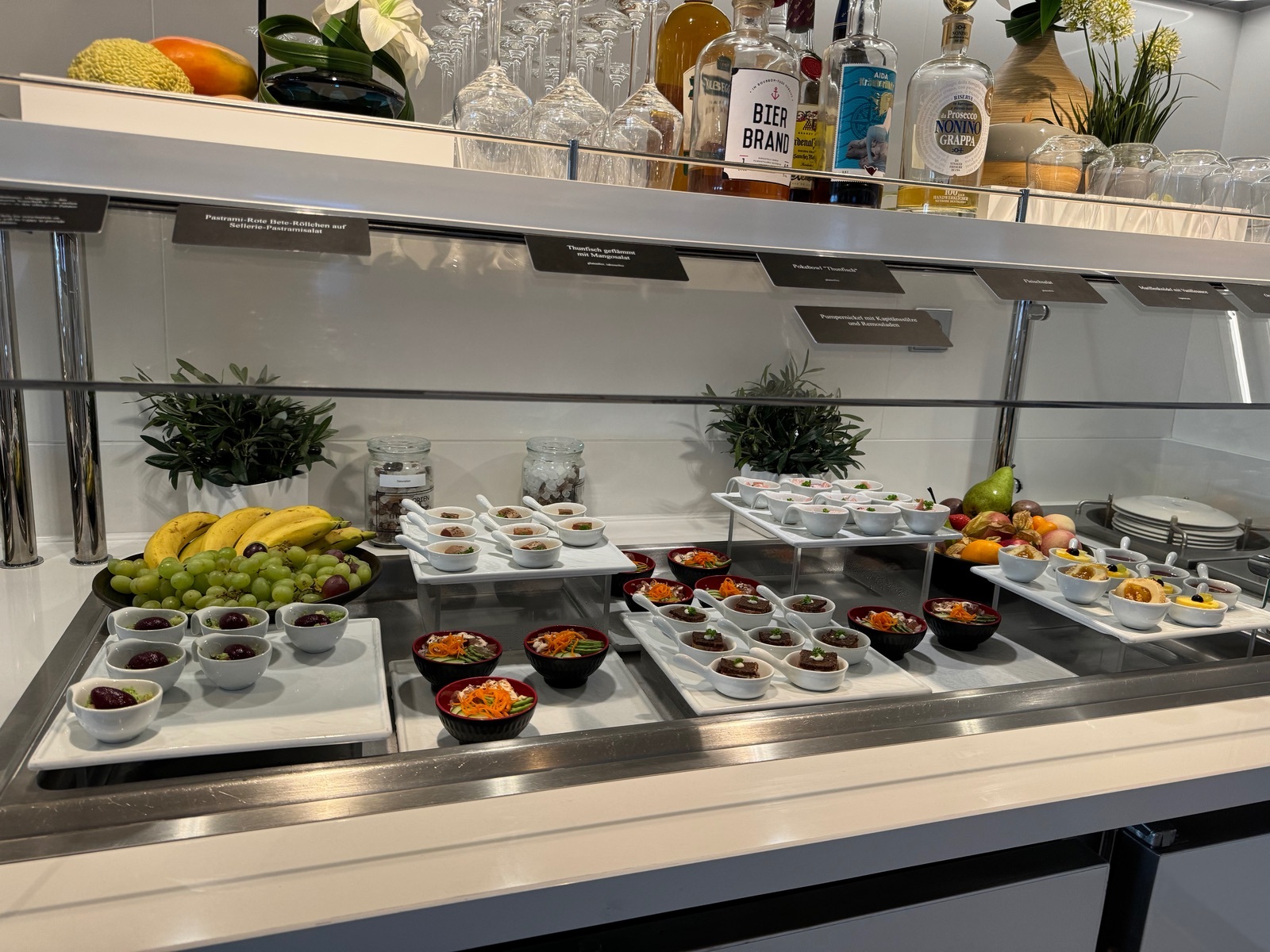Nicht schmackhaft war uns der Weißwein im East-Restaurant, von daher haben wir außerhalb der Lounge keinen Wein mehr geordert.