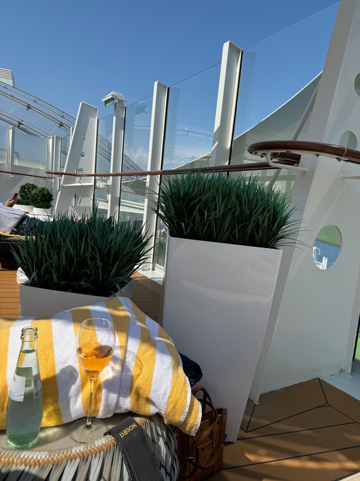 Wir waren in den Pfingstferien 2024 unterwegs (6600 Passagiere davon 2000 Kinder) auf der Nova und die obigen Bilder vom Patiodeck wurden gegen 11 Uhr am Seetag von mir aufgenommen.