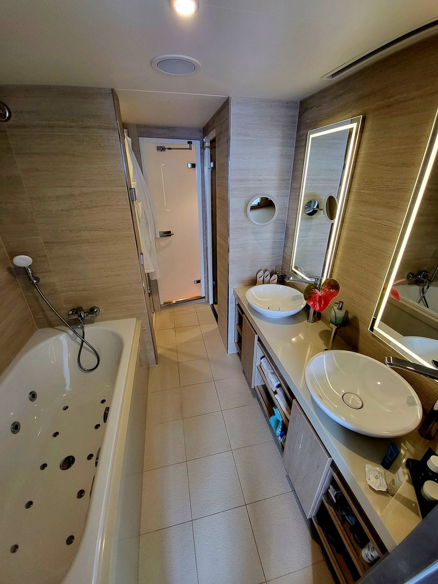 Alternativ findet man in der Wellness Suite (an Seetagen) ne Wanne mit Meerblick vor ...