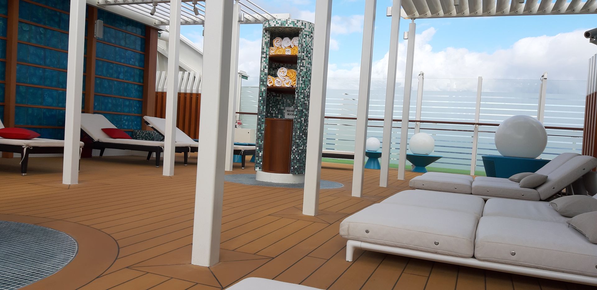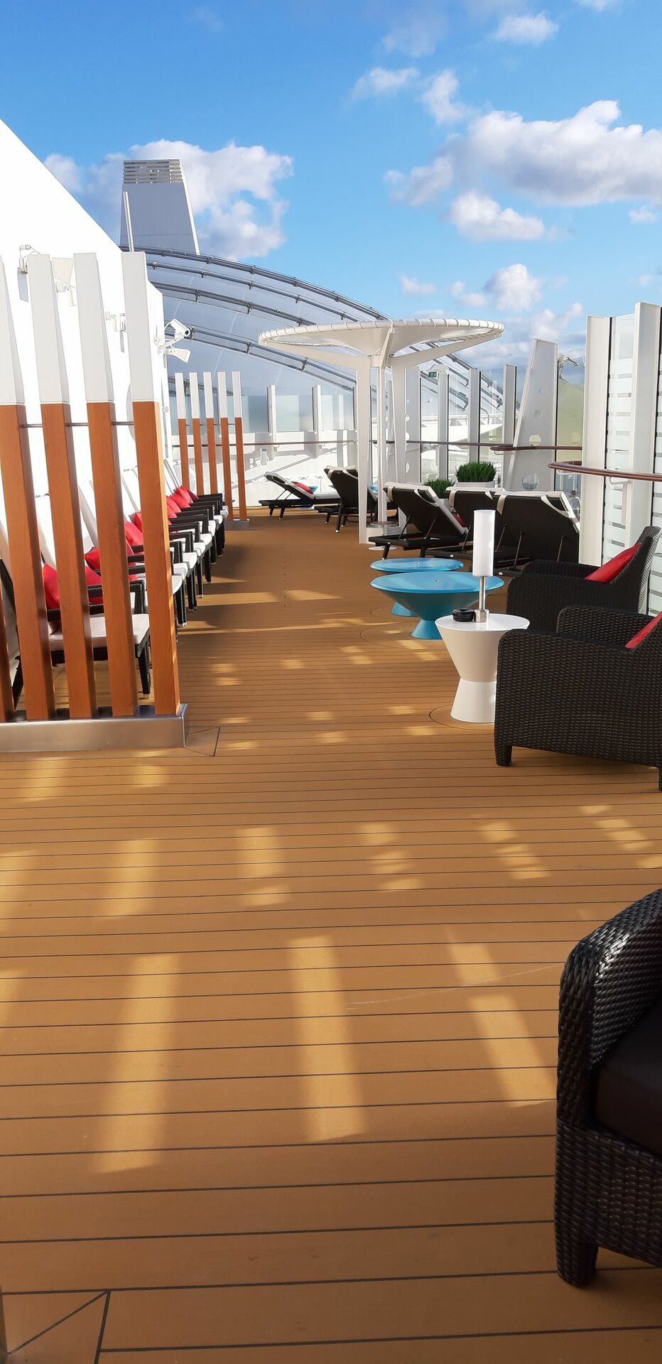 Einen Pool gibt es dort leider nicht. Über die Lounge geht eine Treppe nach oben zum Patio Deck mit Liegen und Sesseln. Wir haben den Bereich sehr genossen. Ich gucke mal gerade nach Foto.