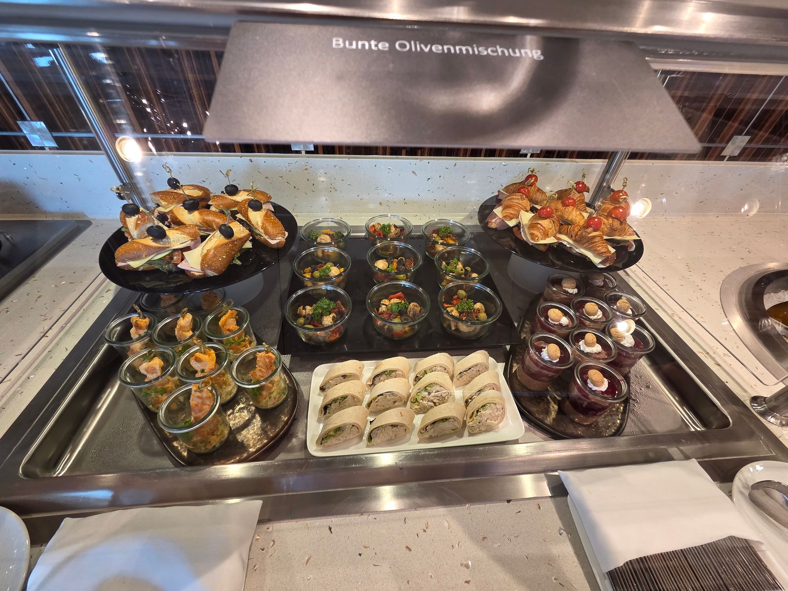 Die Bilder treffen es gut. Waren im Juni/Juli auf der Diva. Uns hat die Lounge gut gefallen, schön ruhig. Kalte Getränke, Weißwein, Rotwein, Sekt rose oder hell. Und verschiedene Häppchen, belegte Laugenstangen und belegte Croissants, meist ein Salat iim Glas und ein Dessert.