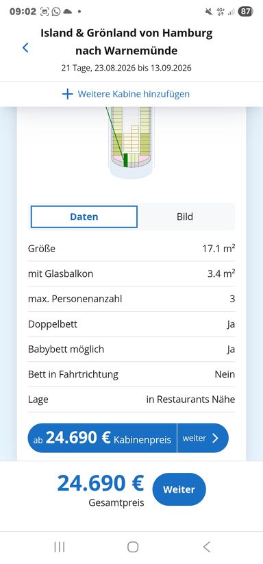 Die SC Suite 8274 ist größer. Wie wärs damit? Allerdings sollten wir das nicht hier diskutieren sondern in den Kabinentipps. Wir sind übrigens auch auf der Reise im nächsten Jahr dabei.