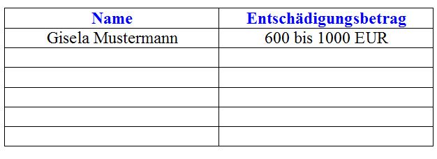Aber nach meinen Erfahrungen wird das mit Entschädigung schwierig werden.![]()