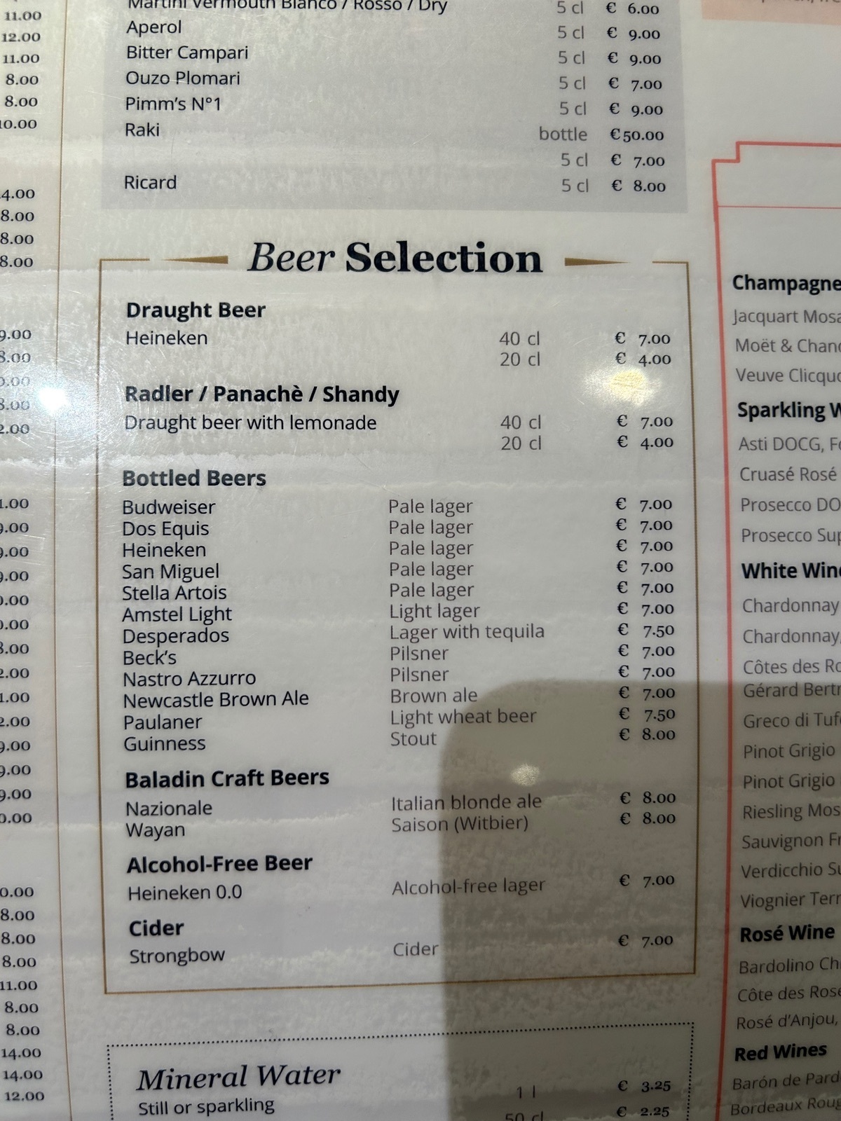 Mittlerweile zahlt man bei MSC ja sowieso nur den Aufpreis, selbst wenn das Getränk teurer als 7,- Euro ist. Das war zu unserer letzten Tour im Mai noch nicht so. Falls man also ab und an mal ein höherpreisiges Getränk will ist der Aufpreis dafür minimal