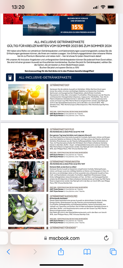 MSCs Getränkepakete Easy, Easy Plus, Premium Extra und Alkoholfrei in allen Details: Welches Paket sich lohnt und woraus Sie achten sollten.