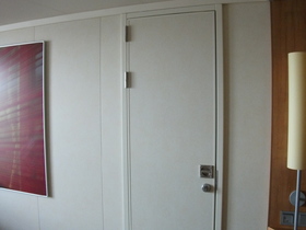 Kabine mit Verbindungstür --> von der Nachbarkabine war aber trotz Belegung nichts zu hören