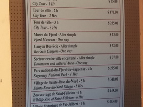 An der netten Touristeninformation im Hafenterminal kann man ein Auto buchen und auch direkt in Empfang nehmen. Der Preis betrug 75 $ + 25 $ für die Versicherung. Die Autovermietung war "National". Man bekam eine Karte und wir sind damit in den Nationalpark gefahren. War ein toller Tag. Außerdem standen draußen Hop on hop off Busse, mit denen man die Umgebung von Saguenay erkunden konnte (20 $) und noch ein Touranbieter (Fjord de Monde), mit dem man auch noch spontan eine Inseltour für 99 $ machen konnte.